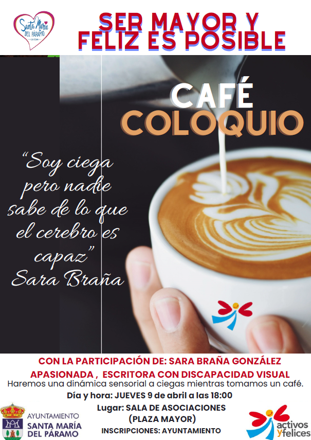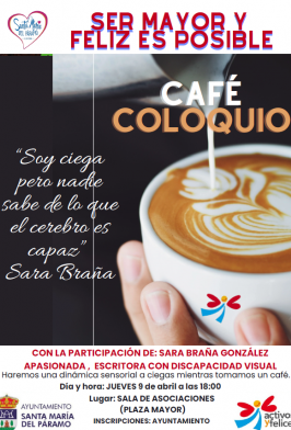 Café Coloquio, tendra luegar el Jueves 9 de Abril a las 18:00 en la sala de Asociaciones en la Plaza Mayor Inscripciones en el Ayuntamiento...