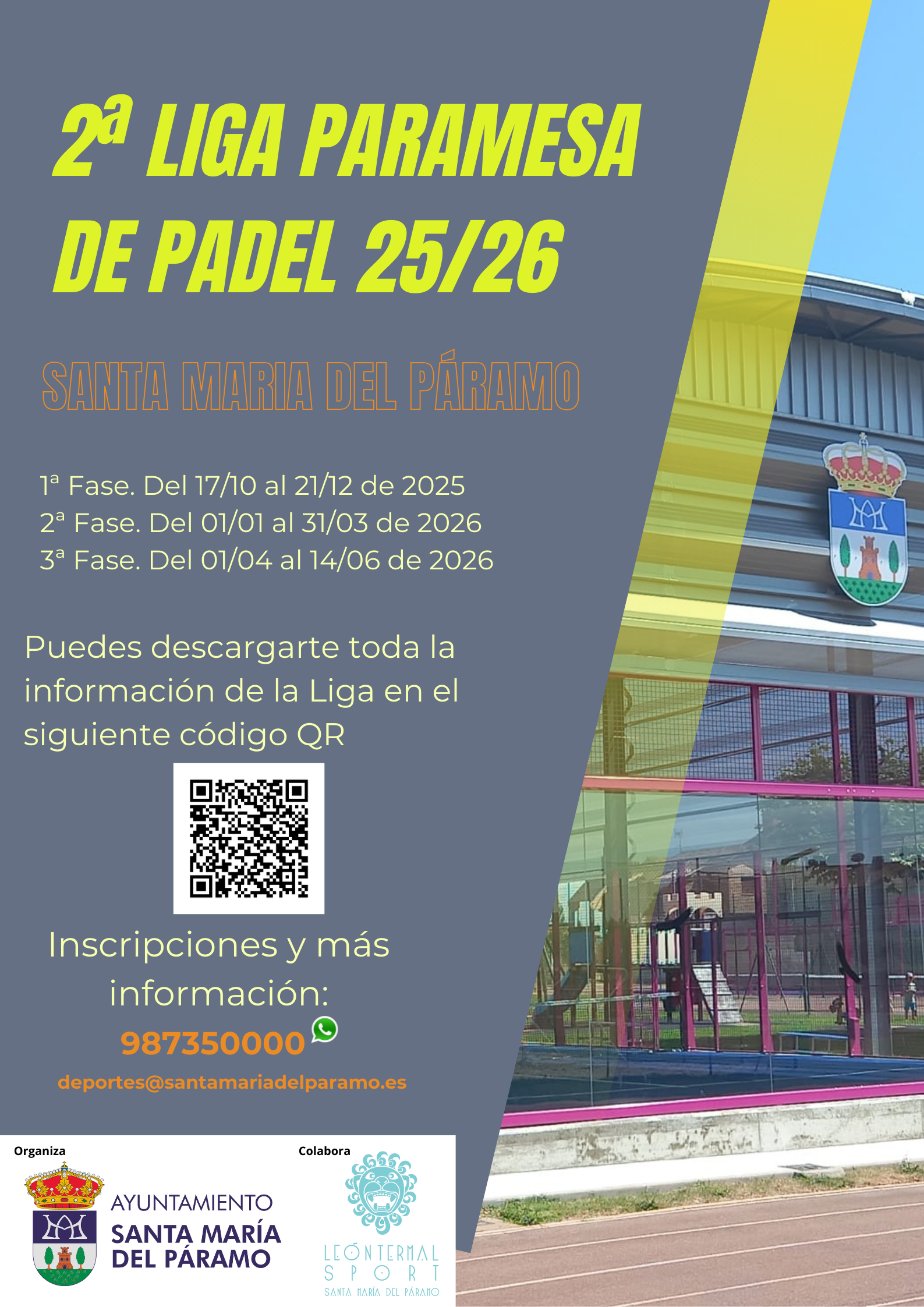 Toda la información de la liga puede consultarse en el siguiente enlace: https://www.xporty.com/tournaments/8016281-ii-liga-padel-santa-maria-del-paramo-2025-2026