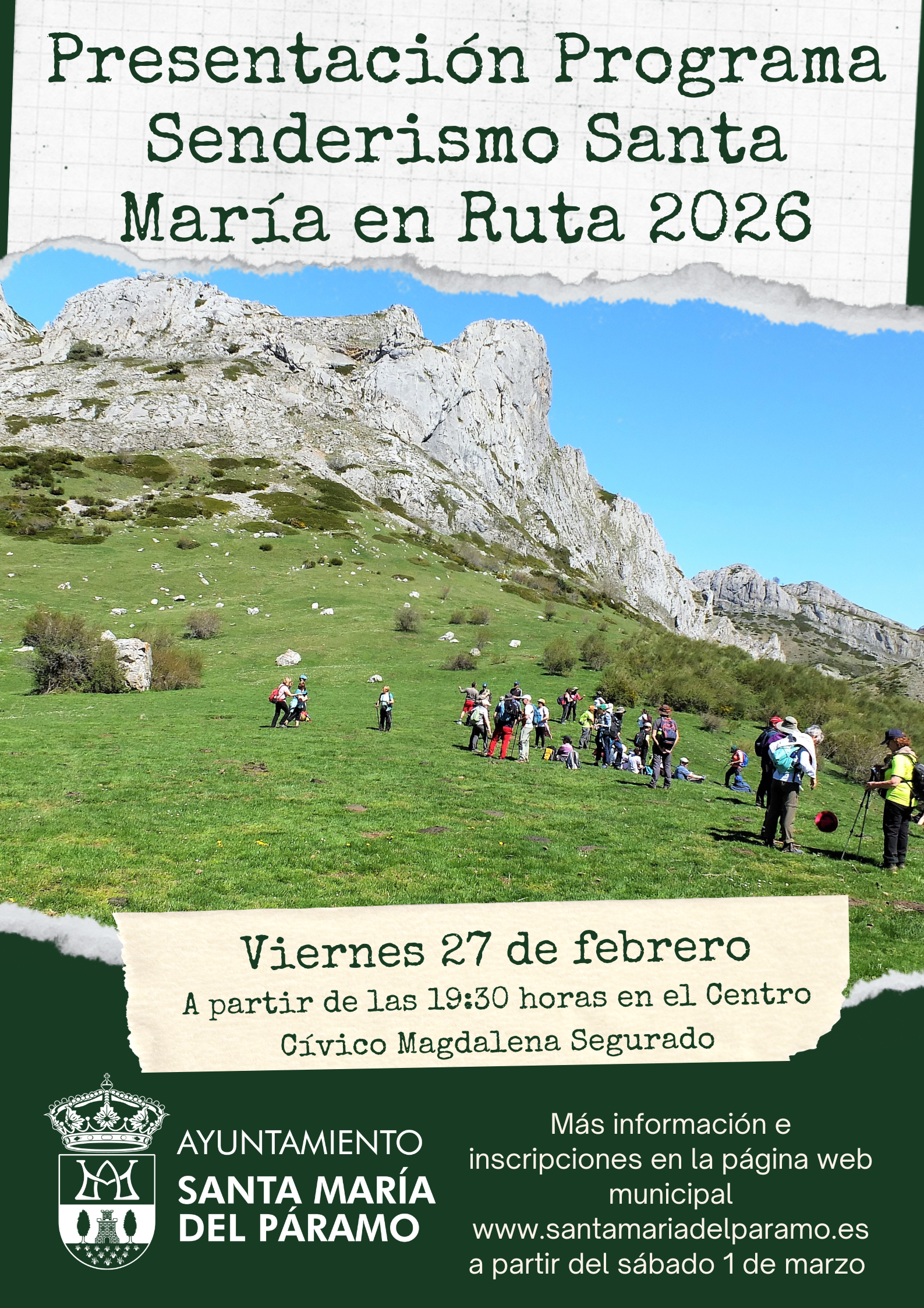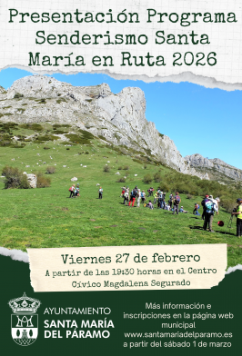 Presentación Programa Senderismo Santa María en Ruta 2026, el viernes 27 de febrero de 2026 a partir de las 19:30 horas en el Salón de Actos del Centro Cívico...