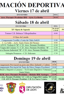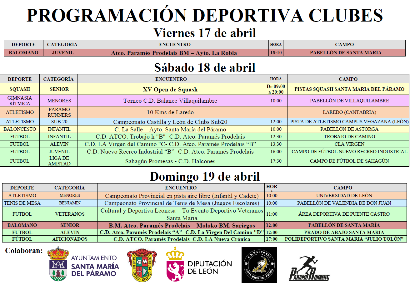 Programación deportiva de clubes, tendra el 17,18 y 19 de Abril