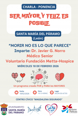 Charla - Ponencia, el miércoles 18 de febrero de 2026 a las 18:15 horas en el Salón de Actos del Centro Cívico de Santa María del Páramo. Imparte:...