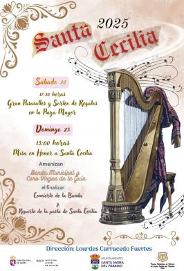 Santa Cecilia 2025 Sábado 22 de noviembre 2025, a las 17:30 horas, Gran Pasacalles y sorteo de regalos en la Plaza Mayor de Santa María del Páramo. Domingo 23 de noviembre de 2025, a...