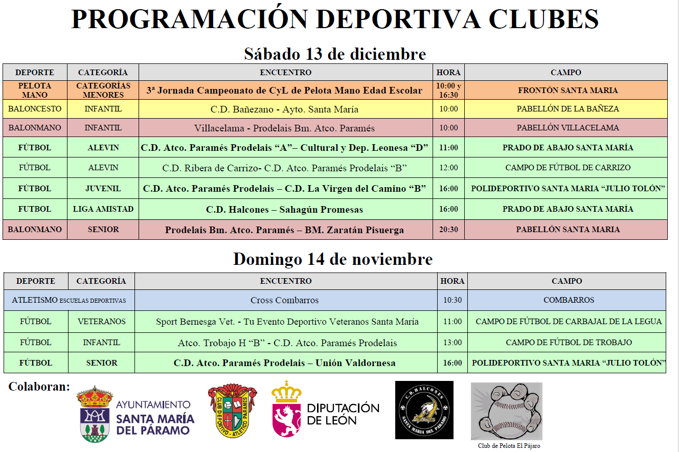 Programación Deportiva 13 y 14 de Diciembre