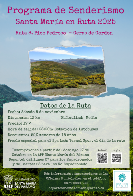 Próxima Ruta 8. Pico Pedroso - Geras de Gordón. El sábado 8 de noviembre de 2025....