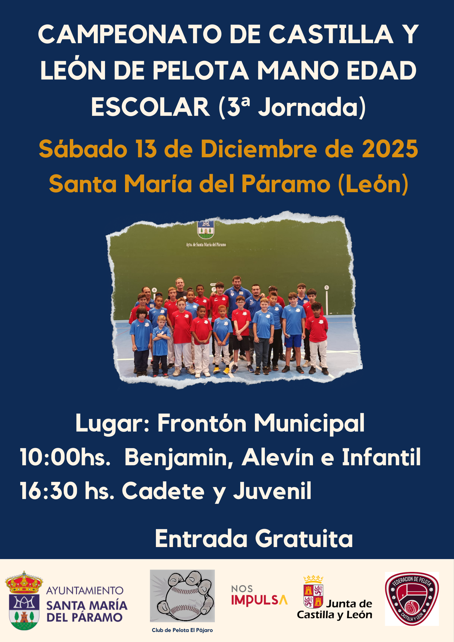 El sábado 13 de diciembre Santa María del Páramo celebra la 3ª Jornada del Campeonato de Castilla y León en Edad Escolar en la que participarán 32 deportistas venidos de toda la comunidad.