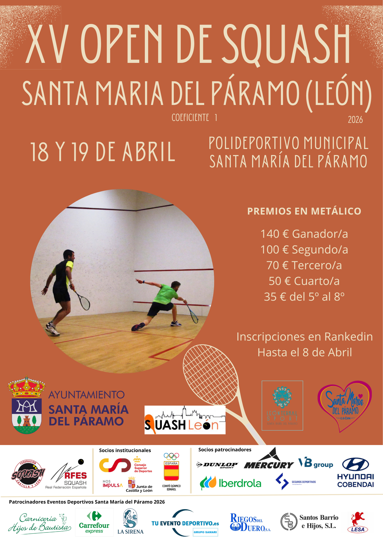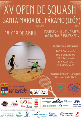 XV open de squash tendra luegar el en el polideportivo municipal el dia 18 y 19 de Abril,