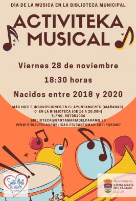Día de la Música en la Biblioteca Municipal de Santa María del Páramo, el viernes 28 de noviembre de 2025 a las 18:...