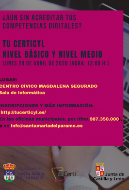 tu CERTICYL nivel básico y nivel medio el lunes 20 de Abril a las 12:00 tendra lugar en el Centro Cívico en la...