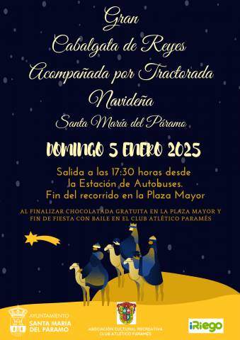 Gran Cabalgata de Reyes acompañada por Tractorada Navideña en Santa María del Páramo, el domingo 5 de enero de 2025.