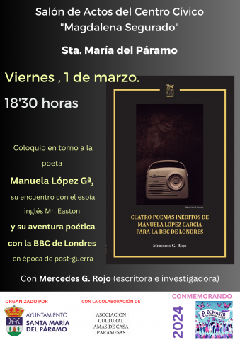 Coloquio en torno a la poeta Manuela López, su encuentro con el espía Mr. Easton y su aventura poética con la BBc de Londres en la época de la post-guerra, con Mercedes G. Rojo (escritora e investigadora)
