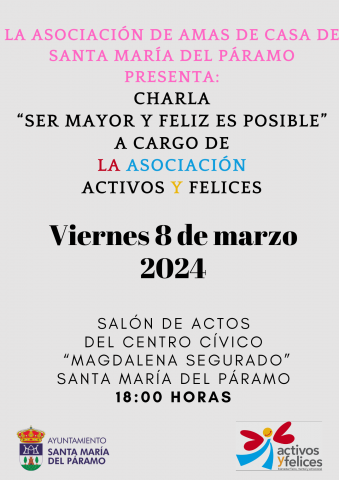Viernes 8 de marzo de 2024 a las 18:00 horas en el Salón de Actos del Centro Cívico de Santa María del Páramo.