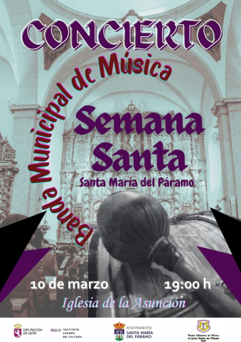 Concierto Banda Municipal de Música de Santa María del Päramo el domingo 10 de marzo de 2024 a las 19:00 horas en la Iglesia de La Asunción.