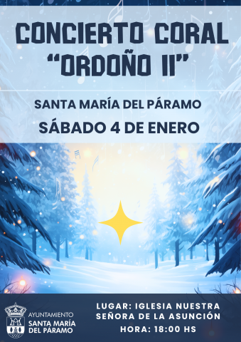 Concierto Coral "Ordoño II", el sábado 4 de enero de 2025 a las 18:00 horas en la Iglesia Nuestra Señora de la Asunción Santa María del Páramo.
