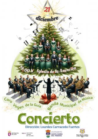 Concierto Navidad de la Banda Municipal de Santa María del Páramo, el sábado 21 de diciembre de 2024 en la Iglesia de la Asunción a las 19:00 horas.