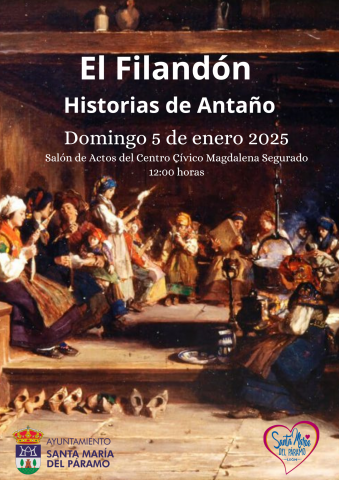 El Filandón -Historias de Antaño- el domingo 5 de enero de 2025 a las 12:00 horas, en el Salón de Actos del Centro Cívico de Santa María del Páramo.