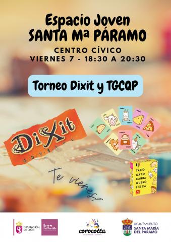 Espacio Joven -Torneo Dixit y TGCQP- Data: 7/02/2025Lugar: Centro Cívico Magdalena Segurado Espacio Joven, viernes 7 de febrero de 2025, de 18:30 a 20:30 en el Centro Cívico de Santa María del Páramo. Más info: https://www.santamariadelparamo.es/.../espacio-joven...