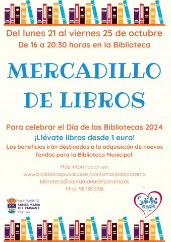 Mercadillo de Libros del lunes 21 al 25 de octubre de 2024 de 16:00 a 20:30 horas en la Biblioteca pública municipal de Santa María del Páramo.