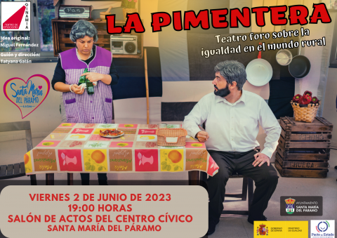 Teatro foro sobre la igualdad en el mundo rural, el viernes 2 de junio de 2023 a las 19:00 horas en el Salón de Actos del Centro Cívico de Santa María del Páramo.