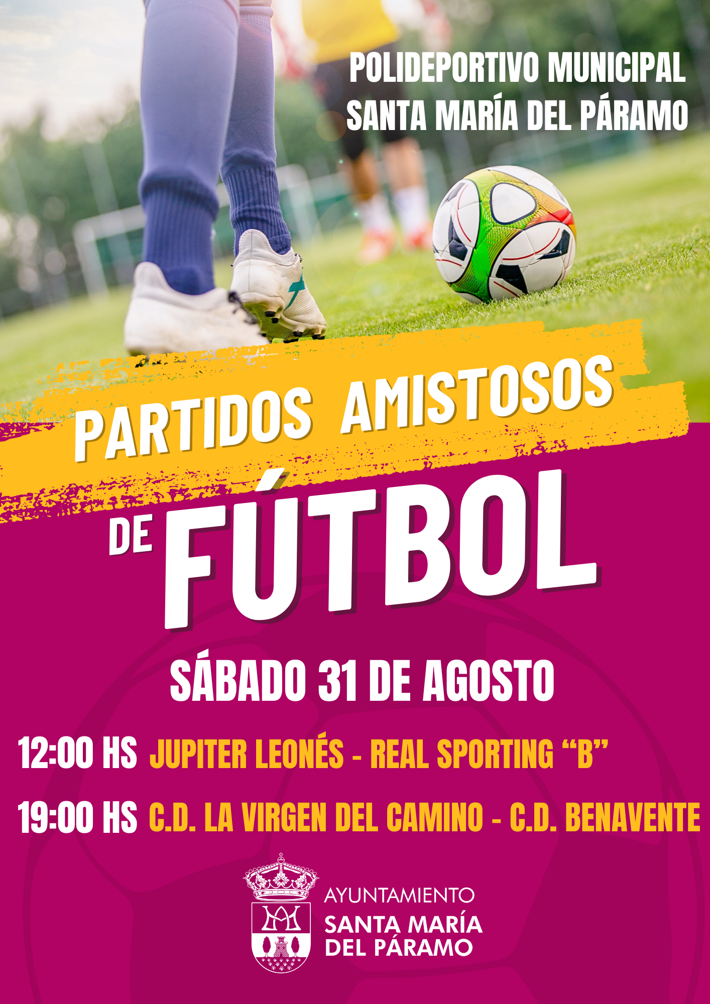 Sábado 31. Partido Amistoso de Futbol “C. D. Virgen del Camino – Benavente”. Lugar: Polideportivo. Hora: 19:00 hs.