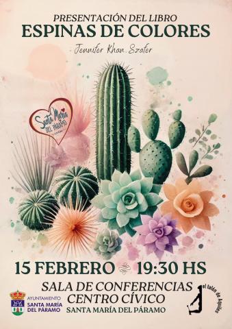 Presentación del libro -ESPINAS DE COLORES- de Jennifer Khan Szafer, el sábado 15 de febrero de 2025 a las 19:30 horas en la Sala de Conferencias del Centro Cívico de Santa María del Páramo.