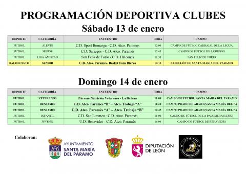 Programación Deportiva Clubes Santa María del Páramo sábado 13 y domingo 14 de enero de 2024.