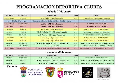 Programación Deportiva Clubes Santa María del Páramo, sábado 27 y domingo 28 de enero de 2024.