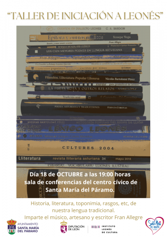 Taller de Iniciación al Leonés el viernes 18 de octubre de 2024 a las 19:00 horas en la Sala de Conferencias del Centro Cívico de Santa María del Páramo.