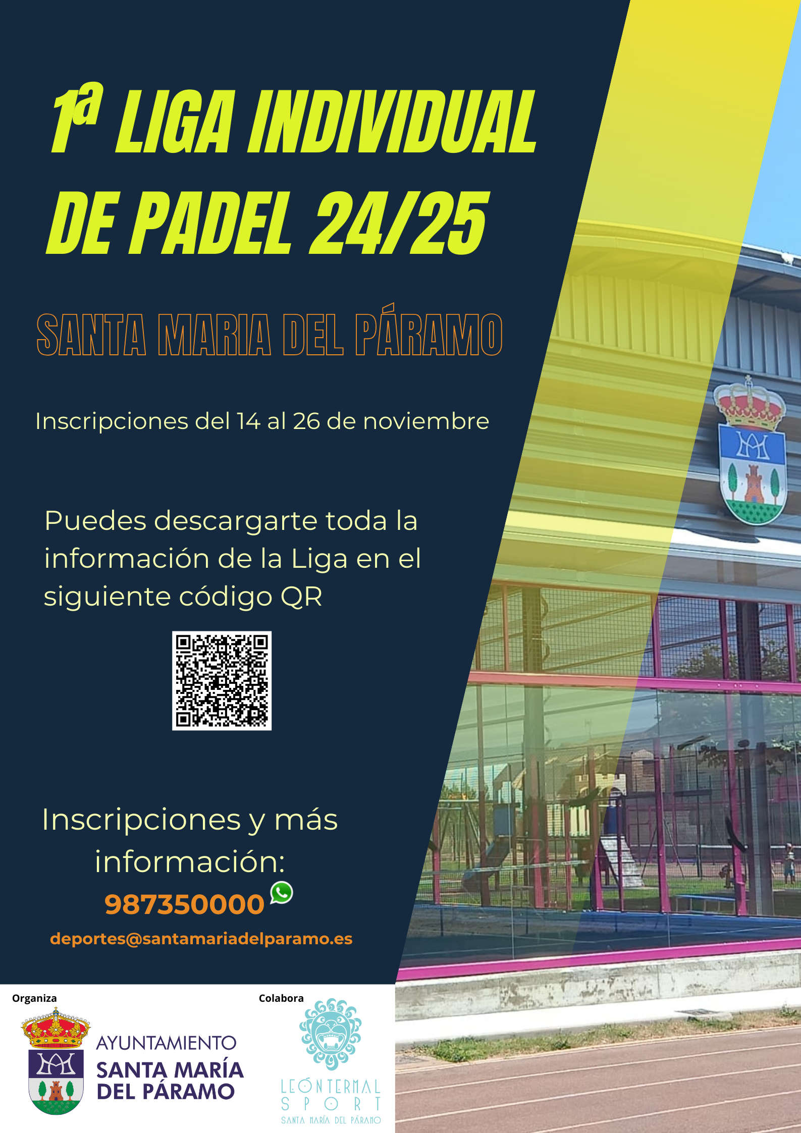 Las inscripciones podrán realizarse desde el 14 al 26 de noviembre de 2024 en el teléfono 987350000, en el 660271094 o en deportes@santamariadelparamo.es