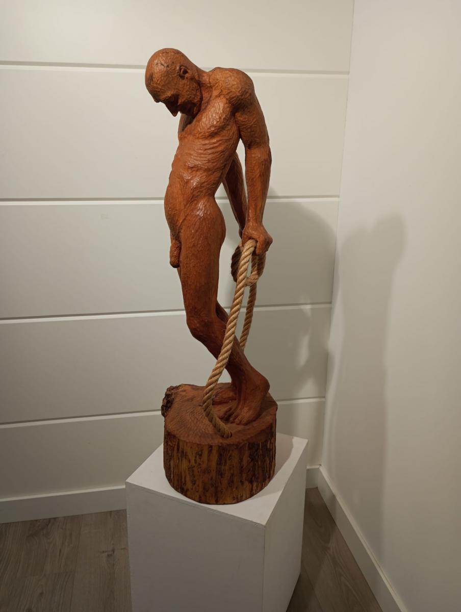 Como tarjeta de presentación, los organizadores de esta exposición dan protagonismo a ‘La lucha del hombre’, de Antolín. Es una escultura en la que se refleja la condición humana al desnudo. Es la fuerza de la humildad la que, en una permanente lucha por la salvación se agarra a una gruesa cuerda para no perder jamás el equilibrio. Un sueño.
