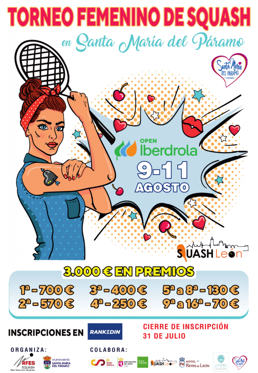 El Ayuntamiento de Santa María del Páramo junto con el club Squash León organizan durante este fin de semana el II Open Iberdrola de Squash femenino, que contará con la participación de 4 de las 6 mejores jugadoras nacionales de esta modalidad deportiva, que vienen de Cataluña, Galicia, Pais Vásco, etc.