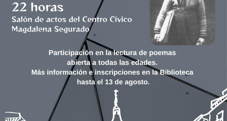 El salón de actos del Centro Cívico Magdalena Segurado acoge el próximo viernes 22 de agosto la tradicional Velada Poética, que este año celebra su 21ª edición.