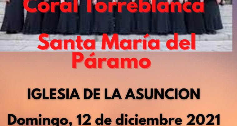 El Ayuntamiento de Santa María del Páramo informa que el próximo domingo 12 de diciembre se realizará el concierto de la Coral Torreblanca a las 18:00 horas en la Iglesia...