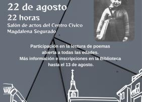 El salón de actos del Centro Cívico Magdalena Segurado acoge el próximo viernes 22 de agosto la tradicional Velada Poética, que este año celebra su 21ª edición.
