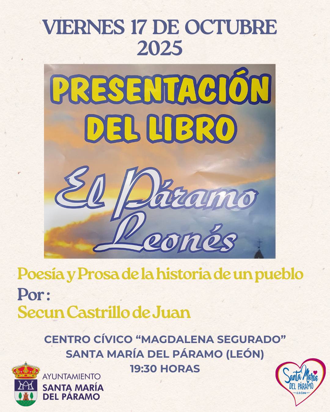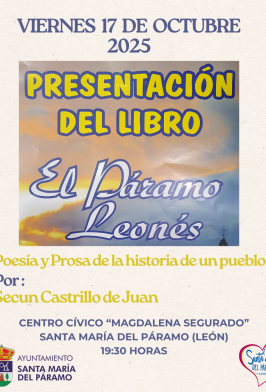 Presentación del libro "El Paramo Leonés", el viernes 17 de octubre de 2025 a las 19:30 horas, en la Sala de Conferencias del Centro Cívico de Santa María del...