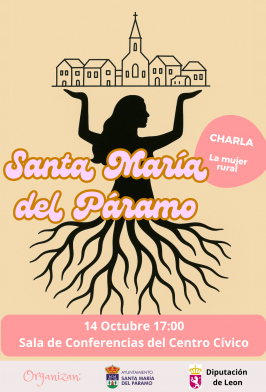 Charla La Mujer Rural, el martes 14 de octubre de 2025, a las 17:00 horas, en la Sala de Conferencias del Centro Cívico de Santa María del Páramo.
