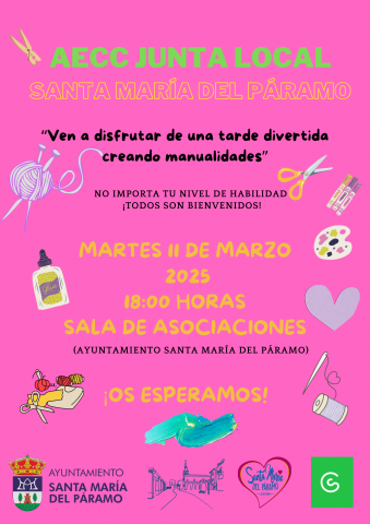 Crea manualidades el Martes 11 de marzo de 2025 a partir de las 18:00 horas con AECC Junta Local de Santa María del Páramo.