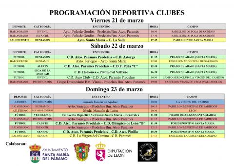 Programación Deportiva Clubes Santa María del Páramo, viernes 21, sábado 22 y domingo 23 de marzo de 2025.