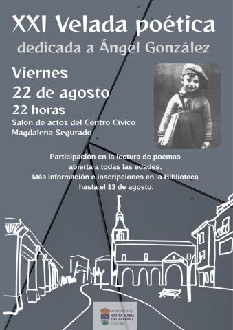 Viernes 22. XXI Velada poética dedicada al escritor Ángel González. Lugar: Salón de Actos. Centro Cívico. Hora: 22:00hs.