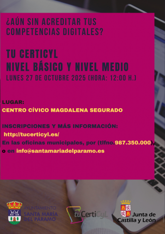 Lunes 27 de octubre de 2025 a las 12:00 horas en la Sala de Informática del Centro Cívico de Santa María del Páramo.