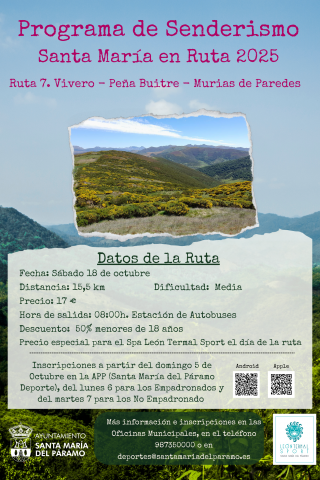 Inscripciones a partir del domingo 5 de octubre en la APP (Santa María del Páramo Deportes), el lunes 6 para EMPADRONADOS y el martes 7 para NO EMPADRONADOS.
