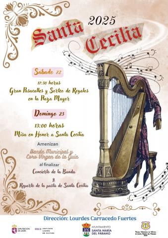 Domingo 23 de noviembre de 2025, a las 13:00 horas, Misa en honor a Santa Cecilia, amenizan Banda Municipal y Coro Virgen de la Guía, al finalizar cincierto de la Banda y reparto de la pasta de Santa Cecilia.