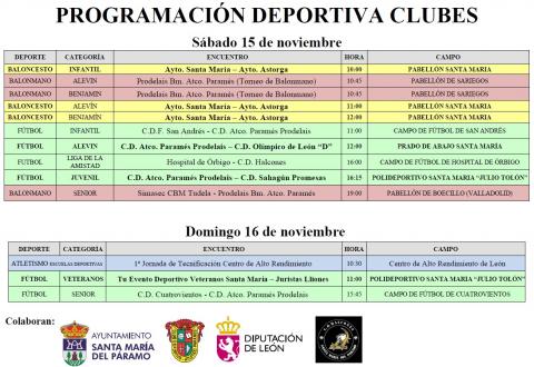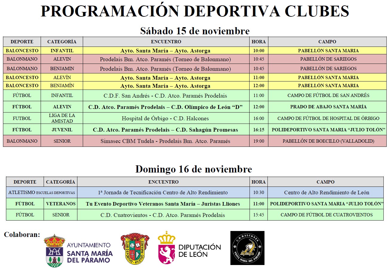 Programación Deportiva en Santa María del Páramo el 15 y 16 de noviembre de 2025