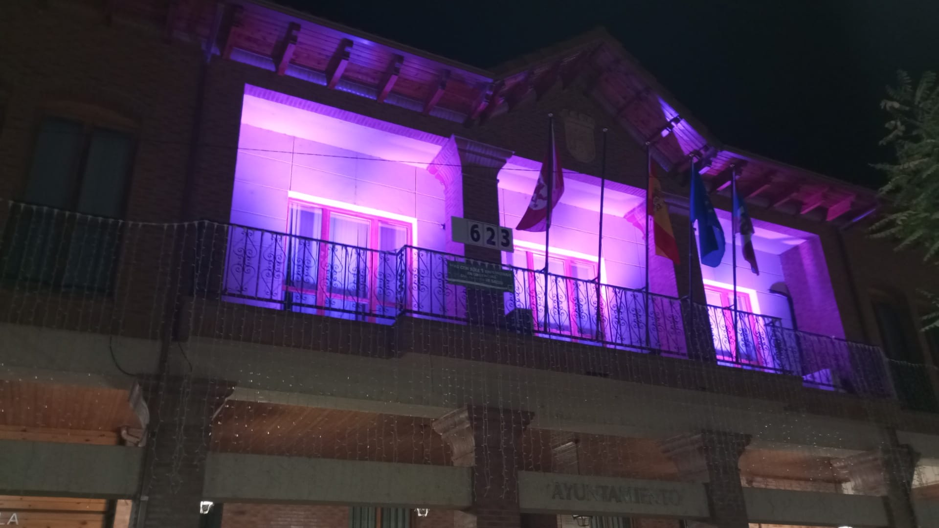 El Ayuntamiento de Santa María del Páramo iluminó su fachada de morado en apoyo a la unidad de Neonatología.