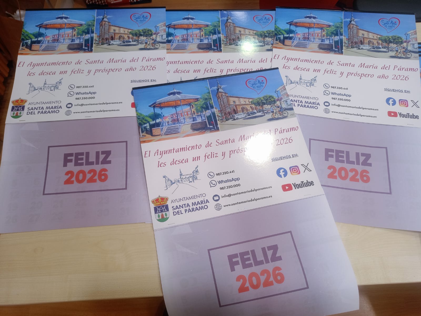 Calendarios 2026 Santa María del Páramo 12/12/2025 El Ayuntamiento de Santa María del Páramo informa que a partir de hoy viernes 12 de diciembre se puede pasar por las oficinas municipales a recoger un calendario del 2026 de la localidad Sólo se podrá coger un calendario por unidad familiar