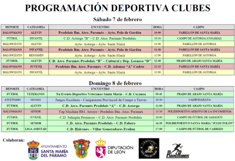 Programación Deportiva 7 y 8 de febrero Data: 5/02/2026Lugar: Polideportivo Municipal Programación Deportiva 7 y 8 de febrero de los clubes y las escuelas deportivas de la localidad.
