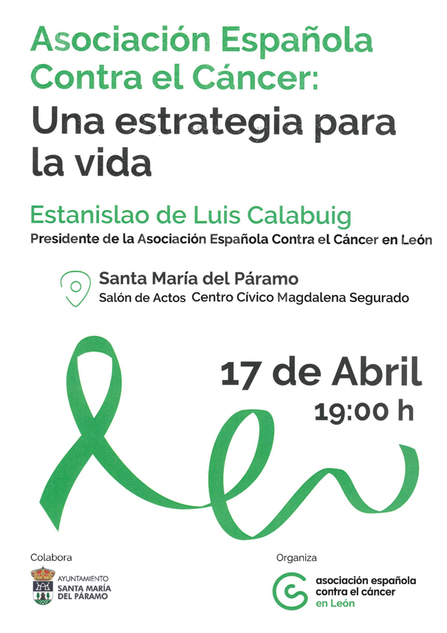 Asociación Española contra el Cáncer: Una estrategia para la vida tendra lugar en el Salón de Actos,