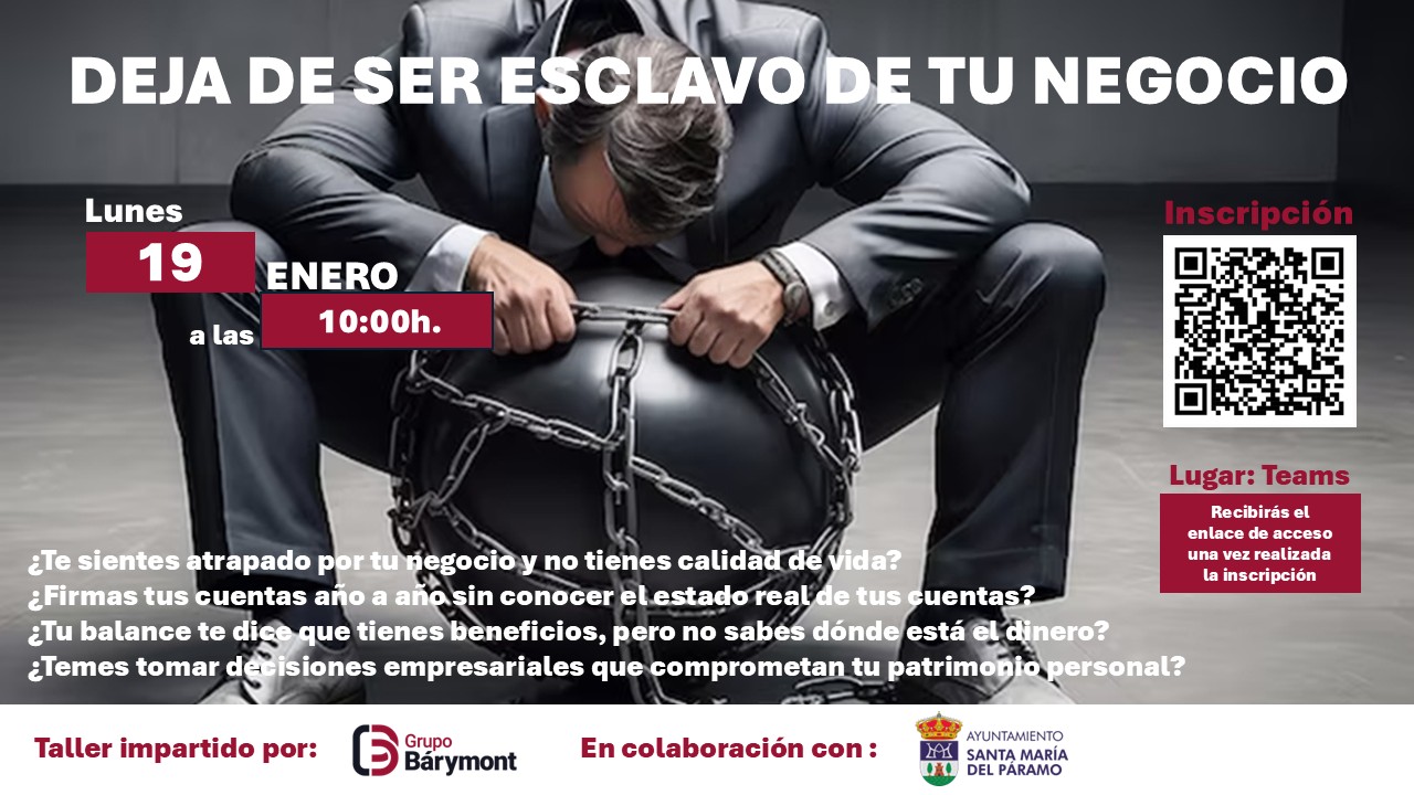 Lunes 19. Charla para empresarios parameses: “Deja de ser esclavo de tu negocio” impartida por GRUPO BARYMONT. Lugar: Sala de Informática. Centro Cívico. Hora: 10:00hs...